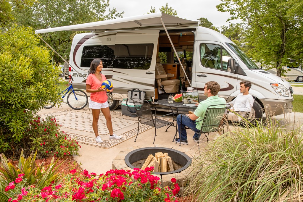 Discover even more room to enjoy outdoor living with a KOA Patio Site®. These spacious sites offer your very own patio equipped with outdoor furniture and the perfect place for a fire. Wake up and enjoy a cup of coffee with the sunrise and spend an evening relaxing with family and friends.